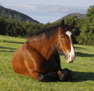 Ginger is great for beginner riders. He will happily plod along in the woods as well as going a bit faster. He loves Own a Pony days and being pampered. He also enjoys having a snooze in the field as you can see!